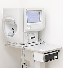 視野が欠けていないか調べます。緑内障の経過観察に使用します。