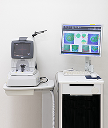 眼底の詳細な写真を撮影し解析いたします。緑内障などの視神経疾患や、糖尿病黄斑浮腫・加齢黄斑変性などの網膜疾患の診断、経過観察に有用です。